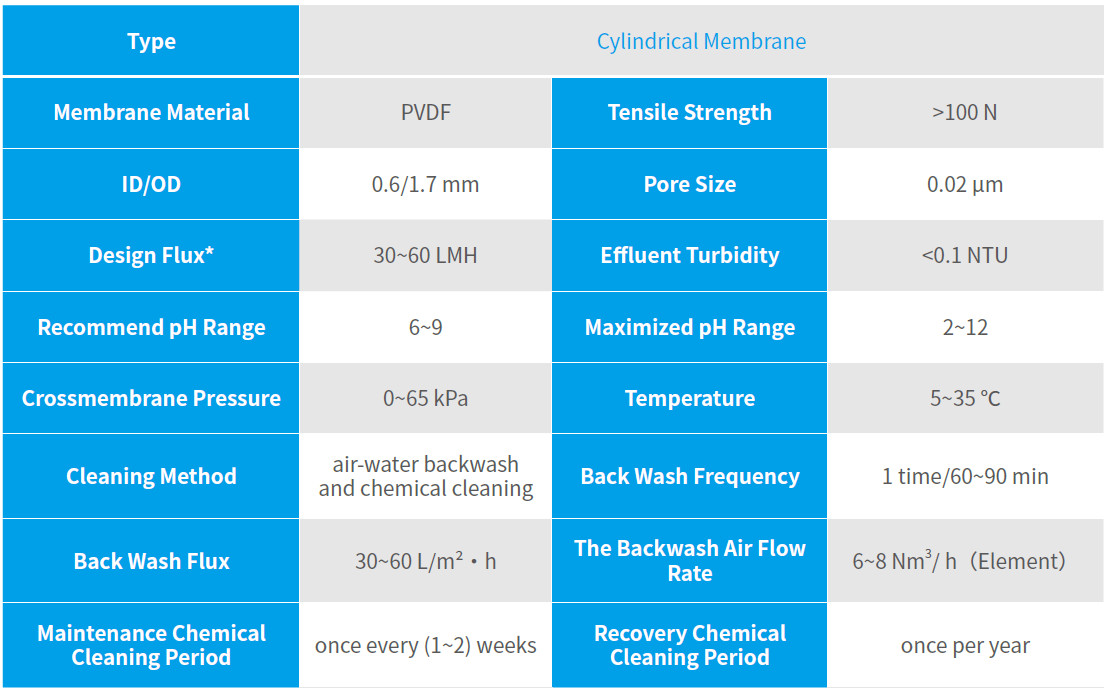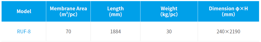 Excellent effluent quality: Narrow membrane pore size distribution, high filtration precision, more than 6log of bacterial retention rate, more than 41og of virus retention rate;